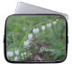 Fotografía de delicadas flores de corazón blancas sangrantes con un fondo de vegetación suavizado. Personalice esta funda de portátil con su nombre, que es un regalo perfecto para cualquier amante de la naturaleza.