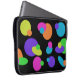 Muestra tu lado divertido con este funda de laptop. Realizado con círculos aleatorios, puntos y formas coloridos sobre un fondo negro. Cambia el fondo a tu color favorito o quédate como para mostrar tu estilo personal. También es bueno para los regalos.