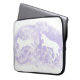 Esta manga portátil está diseñada con mi representación de dos caballos blancos saltando frente a un fondo de lavanda, y está lista para alojar su computadora.