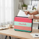 Funda portátil monograma en rayas rosas y verdes