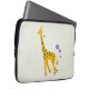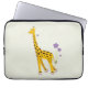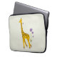 Manga de ordenador portátil con una graciosa jirafa personalizado coqueteando sobre una flor violeta y sonriendo.