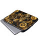 Sin soldadura, metalizado, latón, engranajes dorados sobre un fondo oscuro y oxidado. Estilo Steampunk.