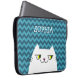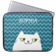Funda Para Portátil Gato Blanco y Zig Zag Azul Monograma