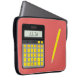 Este inusual y peculiar Funda portátil cuenta con una calculadora con llaves amarillas y letras rojas y una pluma amarilla. El fondo y el texto de la placa de nombres se pueden cambiar para adaptarlo a sus necesidades. Diseños de KPW_Graphics.