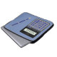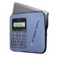 Este inusual y peculiar Funda portátil cuenta con una calculadora con llaves azules y letras blancas y un bolígrafo azul. El fondo y el texto de la placa de nombres se pueden cambiar para adaptarlo a sus necesidades. Diseños de KPW_Graphics.
