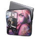 Un graffiti moderno de arte urbano de una mujer con un tatuaje rosa bonito sujetando una cámara. Hermoso arte callejero en su mejor momento, y ahora puedes llevar tu laptop en esta elegante funda de portátil. Añada su monograma y hágalo exclusivamente suyo.