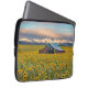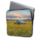 Esta impresionante foto de Getty Images muestra un campo de girasoles creciendo alrededor de un antiguo granero en ruinas con montañas nevadas en el fondo.