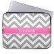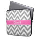 Funda Para Portátil Gris Oscuro Chevron Pink caliente #2 Nombre Monogr