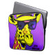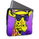 Girafa de tipo Guay con gafas de sol. Colores amarillo claro y violeta. Funky funda para portátil. Nombre modificable.