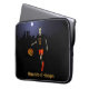 ¿No te engañas o tratas en Halloween? ¿Qué tal un pequeño juego de pepitas? Cuenta con un esqueleto que gotea una linterna de Jack O'Lantern en lugar de un baloncesto. El esqueleto lleva una camiseta con el número "7" y el nombre del equipo "GHOULS". La luna se cierne sobre un oscuro horizonte de la ciudad a lo lejos. El texto que dice "Hoops embrujados" también aparece en naranja.