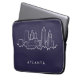 Características del este diseño un bosquejo dibujado mano del horizonte de Atlanta en un fondo púrpura.