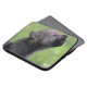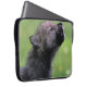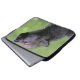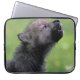 Fotografía de un adorable cachorro de lobo negro aullando en el pasto.