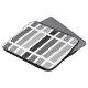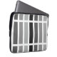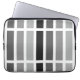 Patrón geométrico lineal, rectangular, rayado de tonos plateados, grises y negros.