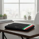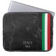 This laptop sleeve transforms technology into a design accessory for the "Identity Tech" trend. The surface features a graphic print simulating black marble with white veining. On the side, three vertical tricolor stripes frame the customizable "M.G" initials. The print finish is matte and scratch-resistant, offering elegant protection that communicates professionalism and attention to material details of Italian design.