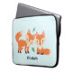 Manga portátil personalizada con un ilustracion gráfico de 2 zorros naranjas que se ven lindos y felices. Fondo azul claro.