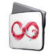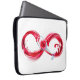 Símbolo infinito de flujo continuo de vino tinto vertiendo en vidrio de vidrio sobre fondo blanco.