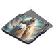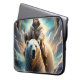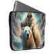 Religión cristiana Jesús se sienta en un oso polar con el blanco de la bata de invierno, el pelo largo y la barba. En la nieve, el oso blanco con el personal en la mano. Arriba en la montaña helada glaciar. Con nieve y una mirada brillante en el cielo nocturno. En esta foto de inteligencia artificial.