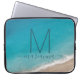 Agua azul turquesa y olas que llegan a una suave orilla de arena con un moderno y caprichoso monograma inicial y nombre personalizado en la parte delantera de una manga portátil disponible para proteger varios tamaños de ordenador diferentes. Haga clic en 'personalizar más adelante' para editar la plantilla y cambiar los tipos de letra o los colores de personalización, o cargue una foto de su memoria de playa favorita.