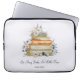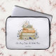 Proteja su portátil al estilo de las librerías. Esta manga de acuarela floral tiene una pila de libros, flores beige y azules, y una cita del libro personalizado - ¡un regalo de amante de los libros!