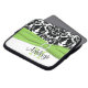 Esta funda personalizada para portátil con estampado damasco blanco, negro y verde lima con una cinta FAUX y broche de joya tiene casillas de texto para que puedas personalizarla con tu propio nombre, monogramas, nombre comercial u otro texto. Si necesitas ayuda para personalizar, por favor envía un correo electrónico a niteowlstudio@gmail.com.