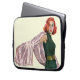 Artista: Coby Whitmore | Mujer de cabello rojo con un vestido verde sosteniendo un guiño rosado.