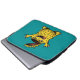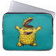 La loca manga de un portátil monstruo sin cerebro con un ilustracion de carácter dibujado con tinta digital en colores verde amarillo y azul.