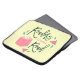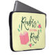 Perfecto para los amantes de los libros, esta manga de portátil incluye las palabras "Los lectores van a leer", rodeada por un libro abierto, rosas y hojas sobre un fondo amarillo claro. *Tenga en cuenta que la marca de agua Zazzle que aparece en la vista previa del zoom no aparecerá en el producto impreso final. © Bookish y WonMart