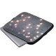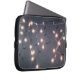 La obra de arte original de esta funda de portátil de 10" fue creada a partir de una fotografía original de ZoeSPEAK de una cuerda de luces blancas y una cuerda negra vacía, colgada en giros y vueltas frente a una pared de estuco. Las luces tienen un resplandor rosado y la pared es un gris azulado oscuro.