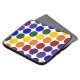 Los lunares coloreados arco iris se arreglan en filas en un fondo blanco. La compensación rema diagonales de la forma de cada color: violeta, añil, azul, verde, amarillo, naranja, y rojo.