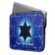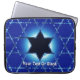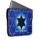 Una simple imagen fractal de color azul de múltiples instancias de un Magen David (Estrella de David) formado por líneas entrecruzadas de vidrio o cristal, la estrella central está llena de azul oscuro. Añade tu propio texto.