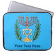 Esta imagen fue adaptada de una antigua teja judía persa y cuenta con una menorah con un Magen David (Estrella de David) enmarcado por ramas de olivo. Se han conservado las imperfecciones de la imagen original pintada a mano.