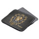 Majestuosa cabeza de león dorada con mané negro. Los detalles artísticos en la cara para enfatizar la fuerza y la gracia del animal. Esta combinación de oro y negro le da al diseño un toque elegante y lujoso.