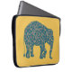 Una fresca manga de neopreno al personalizar para tu portátil, con una silueta de elefante, llena de un patrón azul oscuro y paisley borgoñona sobre un fondo amarillo dorado que puedes cambiar si lo deseas. Este diseño, que forma parte de la colección "Heffalumps" de Posh & Painterly, se puede ajustar para que se ajuste a cualquier funda de portátil.