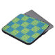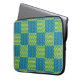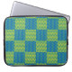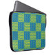 Una elegante manga Neoprene para proteger su portátil (hasta 17"), con un patrón geométrico "patchwork" en la tendencia verde esmeralda, azul monegasco y verde de brotes de licitación, con un enlace negro contrastante.