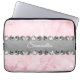 Un elegante patrón de mármol rosa de color rosa con una cinta metálica de plata donde se puede personalizar junto con un borde de diamante plateado para más ostentación. Las modas están decoradas con gusto.