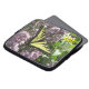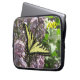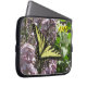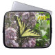 Nector de sorbo de mariposa negra y amarilla de una hilera de flores de timbre azul.