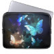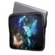 Fabuloso, brillante, azul y amarillo, mariposa nocturna sobre fondo oscuro.