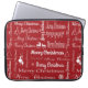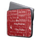 Merry Christmas illustration with text and Christmas symbols decoration on red background