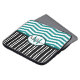 Monograma personalizado y Moda de nombres verde azulado y negro patrón de chevron y rayas sobre fondo blanco
