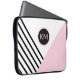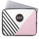 Diseño geométrico de arte pop contemporáneo con un toque retro, esta manga de diseño para portátil de avanzada tiene rayas negras y bloques de color rosa con un marco redondo que se corresponde de forma destacada con el monograma. Personalice la plantilla de texto con su monograma. En este elegante diseño hay otros productos de oficina y accesorios de equipo técnico a juego.