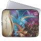 Funda Para Portátil Moderno Fractal Blue Gold Nombre manuscrito Funda-