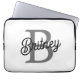 Funda Para Portátil Moderno y elegante nombre de monograma guión gris
