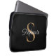 Funda Para Portátil Monogram Elegant Script Name Black Gold