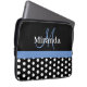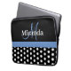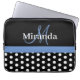 Funda Para Portátil Monograma azul Punto de Polka Blanco Negro