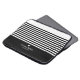 Esta funda monocapa de portátil rayado en blanco y negro presenta un corazón blanco sobre un fondo negro.
