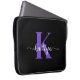 Este sencillo y elegante manga para portátil negro de 15" con tu primer nombre en un tipo de letra de guión de moda en blanco y tu primera versión inicial en un tipo de letra moderno en color morado es perfecta para ti. Es de diseño y a la vez muy clásico. Es único, como tú.