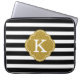 Funda Para Portátil Monograma de oro de franjas negras elegantes