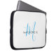 Elegante manga de portátil monograma moderno con guión azul del cielo blanco. Un elegante guión azul cielo combinado con una limpia fuente san-serif en negro aporta un aspecto contemporáneo.