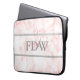 Modifique esta manga del ordenador portátil para requisitos particulares con el monograma del beneficiario en este falso fondo de mármol rosado. Dos líneas grises están por encima y por debajo de las iniciales.