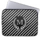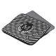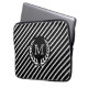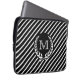 funda para portátil: monograma enmarcado con flor en el fondo diagonal blanco y negro rayado